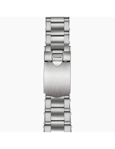 Steel screw-down winding crown, with the TUDOR rose in relief, with circular satin-brushed steel winding crown tube