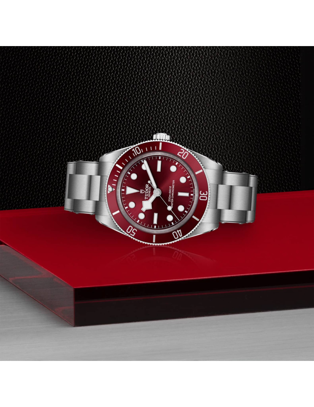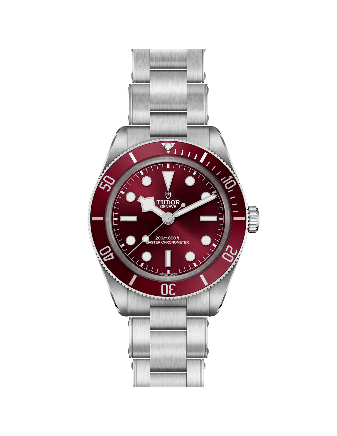 Burdeos, abombada, con marcadores de hora con apliques