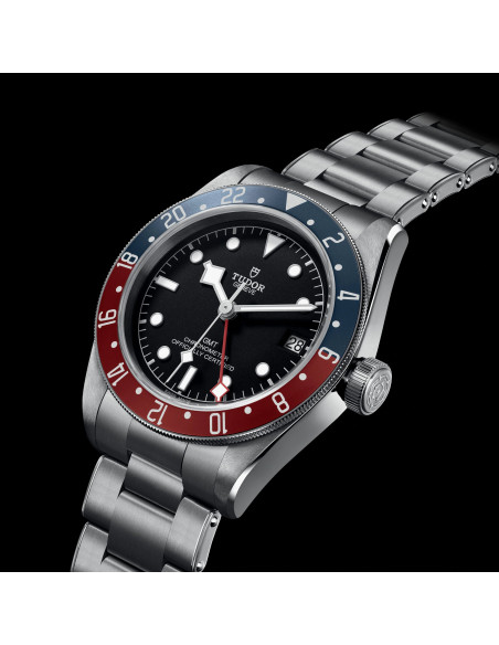 Corona a rosca de acero, con la rosa de TUDOR en relieve, con tubo de corona circular de acero satinado