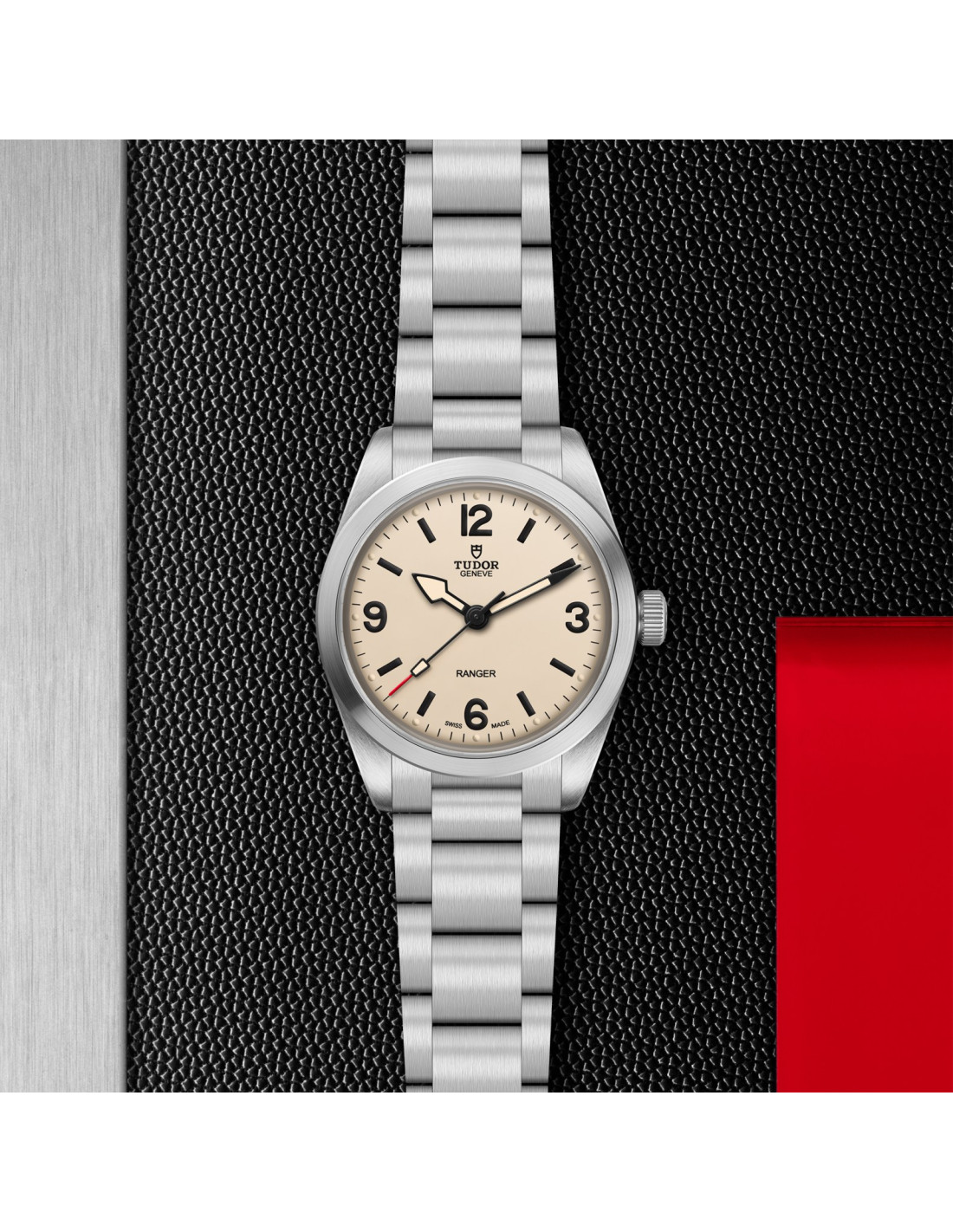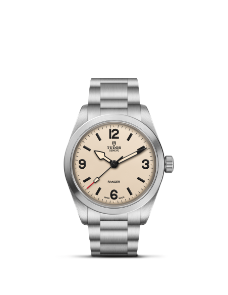 Brazalete de acero con tres eslabones y un cierre desplegable con el cierre de seguridad TUDOR «T‑fit»