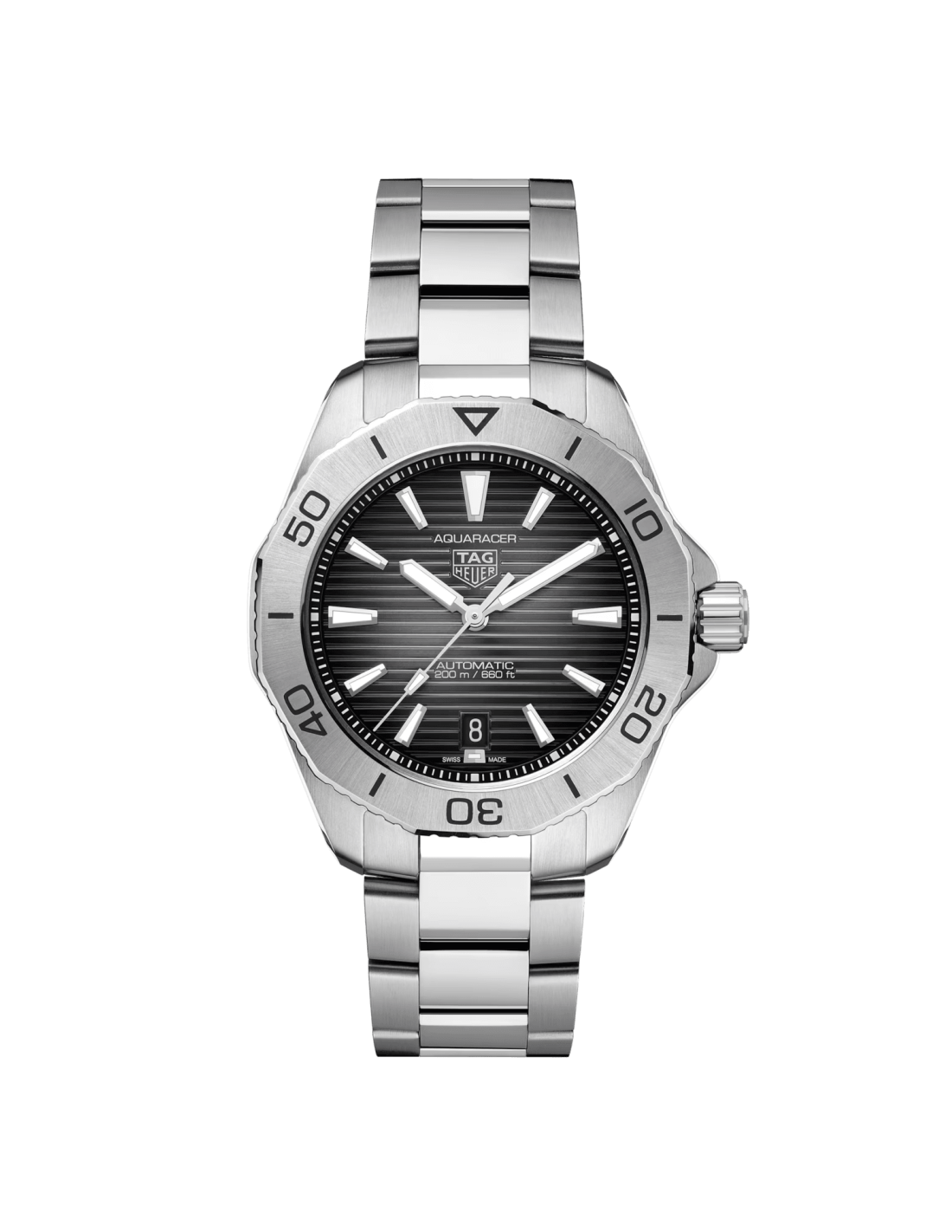 La caja de 40 mm de acero del TAG Heuer Aquaracer es sumamente versátil. Gracias a su ergonomía y a sus acabados óptimos, resulta incluso más cómoda en la muñeca.