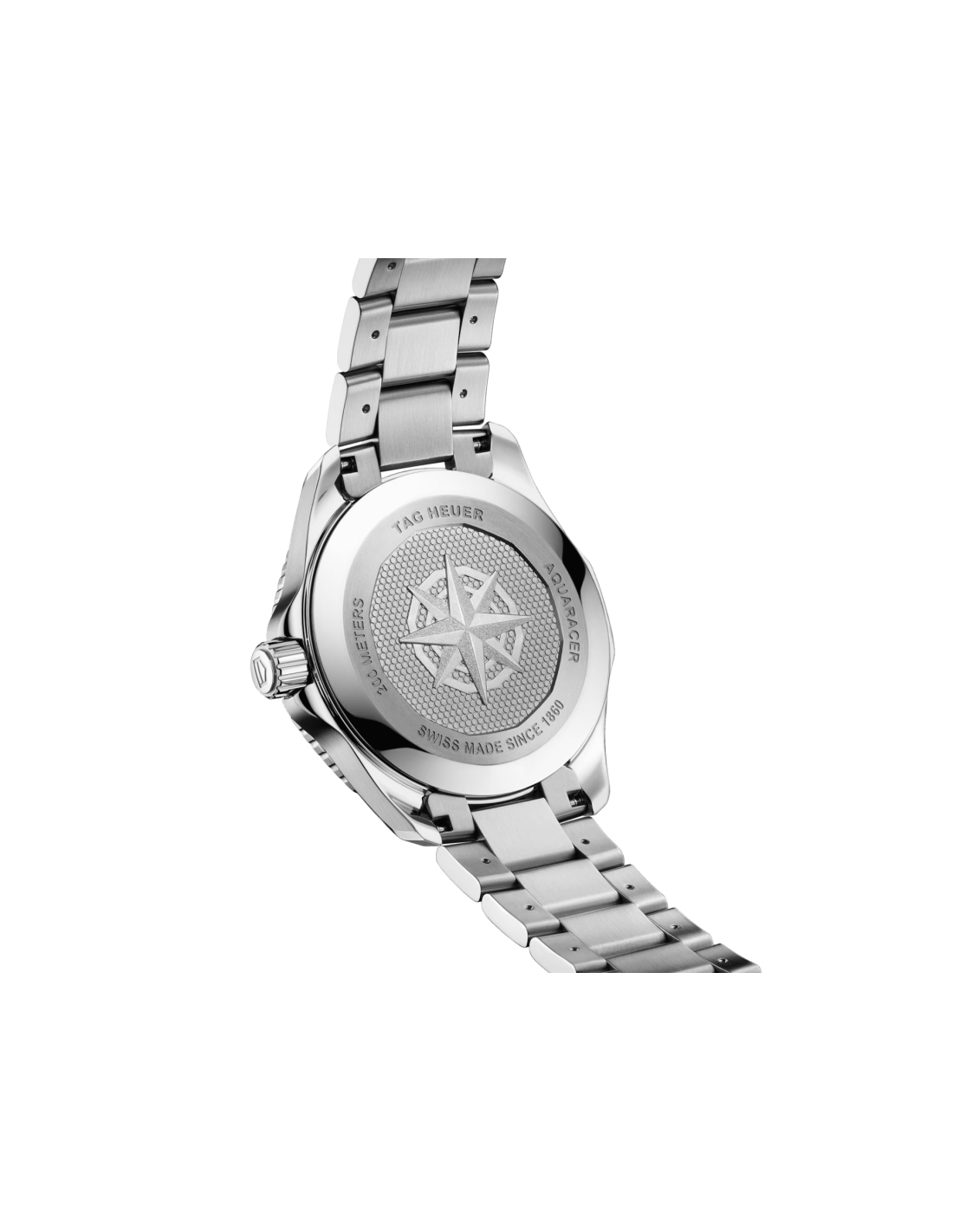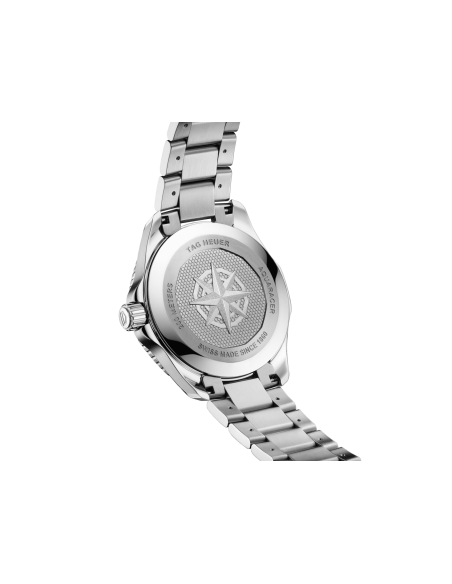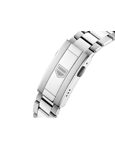 Este TAG Heuer Aquaracer, equipado con un estrecho brazalete de acero que presenta un práctico eslabón de extensión, lleva el alto rendimiento en su interior.